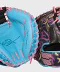 This glove brings heat with a wild Columbia Blue and Black sublimated back, accented by neon squiggles and sharp pink laces for an electric look. The Columbia Blue palm is built with top-tier leather and REV1X technology to deliver elite-level durability, comfort, and structure. With a 34-inch CM43 pattern and solid one-piece web, this mitt is made to own the zone.